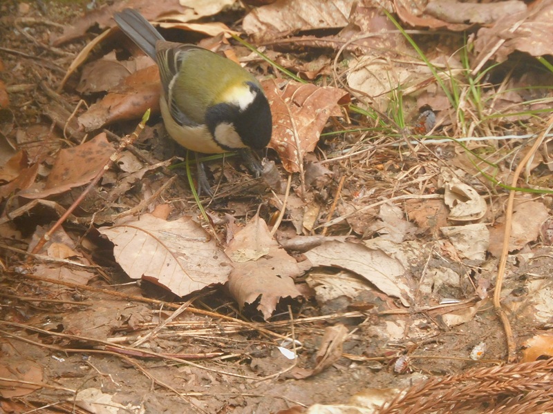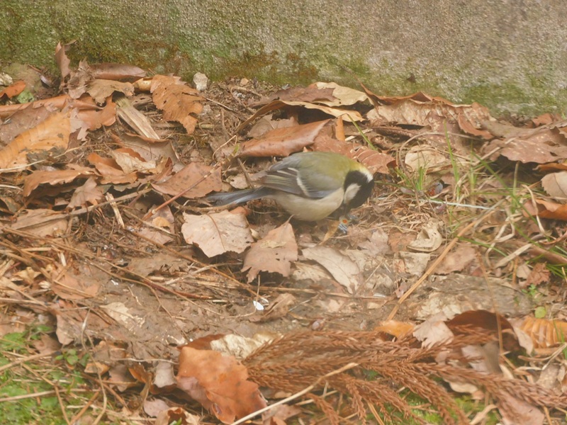 近くで昆虫を探していたシジュウカラがチュンチュンいいながらやってきて